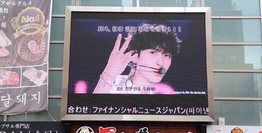 2024年8月26日(月)〜9月1日(日)での期間で開催した[K-STAR BOARD投票] 最高の「こしたんたん・チャレンジ」のアイドルは?の投票において1位に選ばれたJD1さんの応援広告が、新大久保のK-PLAZA 1号館の屋外ビジョンで上映されております。