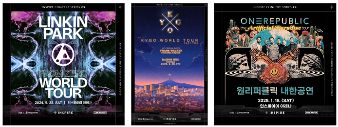 多彩なエンターテインメントとアトラクションが一堂に集まっており、最新のエンターテインメントと最上級のホスピタリティを体験できる世界唯一の統合型リゾートです。もちろん宿泊の滞在もお楽しみいただけますが、仁川空港からのアクセスも良いため、お立ち寄りいただくだけでもエンターテインメントを体験いただくことができます。また、インスパイア・アリーナで行われるライブにつきましては、好きなアーティストと同じ空間に滞在できるという魅力もあります。これまでに、インスパイア・アリーナは大規模なK-POP公演、スポーツ大会、eスポーツ大会など幅広いジャンルのイベントを数々成功させ、韓国初の多目的パフォーマンスホールとしての地位を確立しています。世界最新鋭の音響設備と舞台設備、そしてどの席からもステージが見やすく設計された客席構造が、思い出に残るアリーナ体験を演出します。これまでにMaroon 5(マルーン5)やウエストライフなど世界的なアーティストが出演する「INSPIRE Concert Series」の継続的な企画に積極的に取り組んでいます。