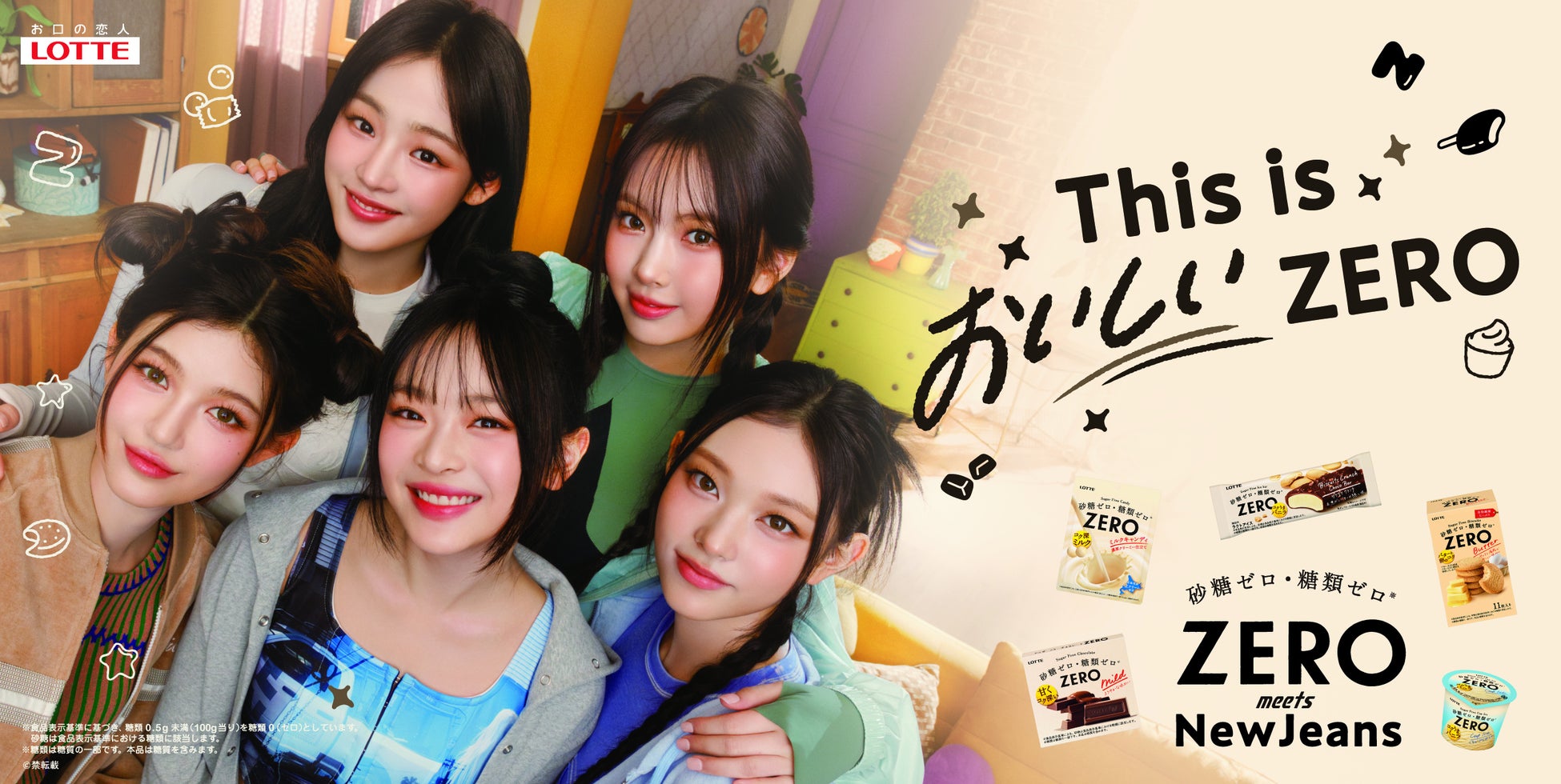 株式会社ロッテ(本社:東京都新宿区)は、砂糖・糖類ゼロ※の『ZERO(ゼロ)』ブランドの広告モデルに起用している、2022年デビューの5人組グループNewJeansの新キービジュアルを公開いたします。