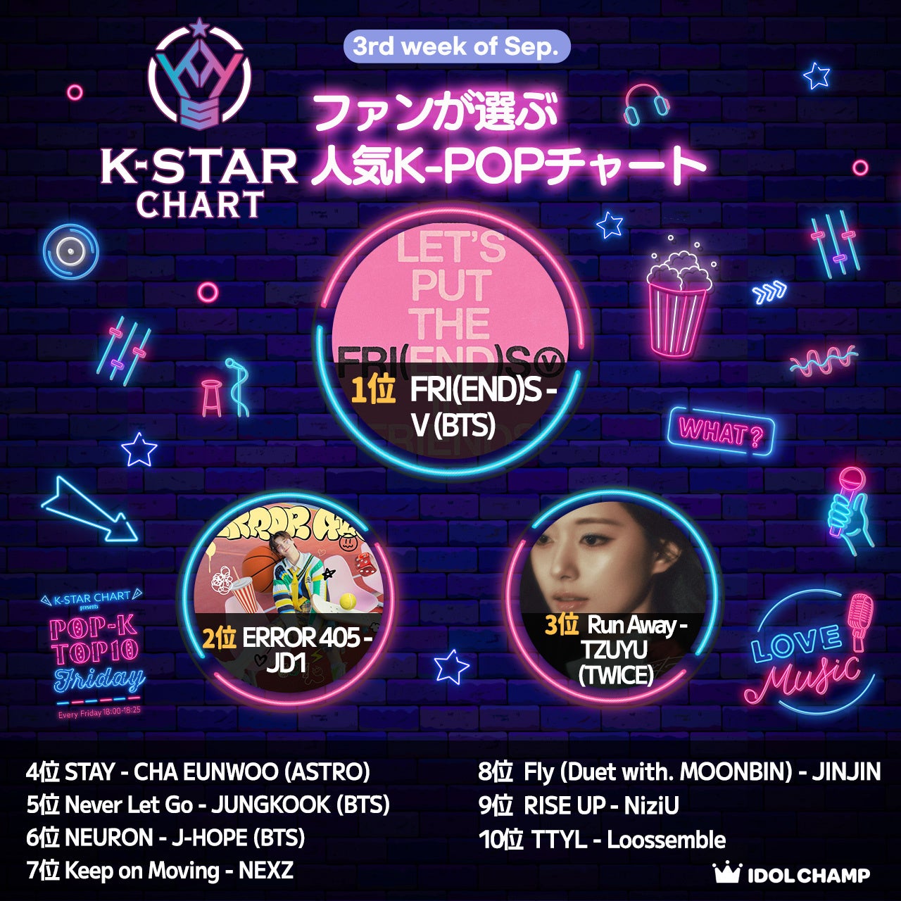 『K-STAR CHART presents POP-K TOP10 Friday』9月20日(金)の放送回において3位にTWICE・TZUYUの「Run Away」が初登場ランクインし番組内で放送されました。