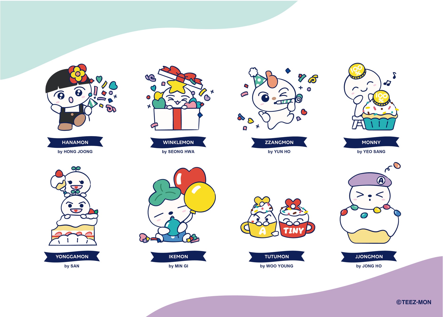 ATEEZ メンバーひとりひとりが、それぞれの想いをスケッチするという形で誕生したキャラクターたちです。『TEEZ-MON』はどんな時でも ATEEZ メンバー、そして ATINY(ファン)の「傍にいるよ」というメッセージがたくさん詰め込まれているキャラクターです。