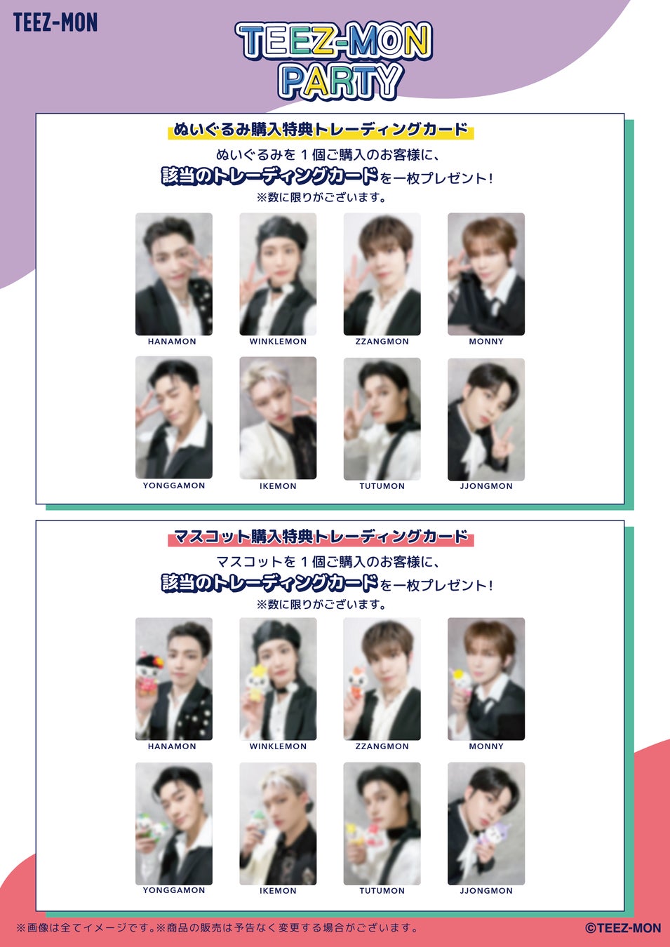 『TEEZ-MON Party』POP UPでは、Party仕様のオリジナルのぬいぐるみやマスコットなどを販売いたします。