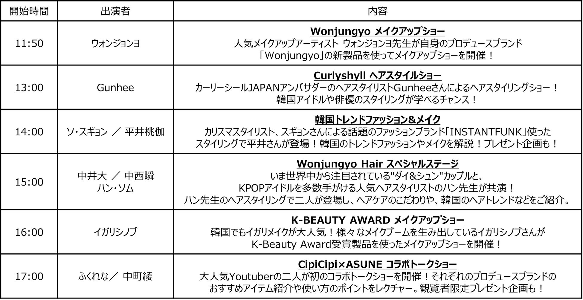 ■ ALLURE K-BEAUTY FAIR in TOKYO スペシャルステージ タイムスケジュール