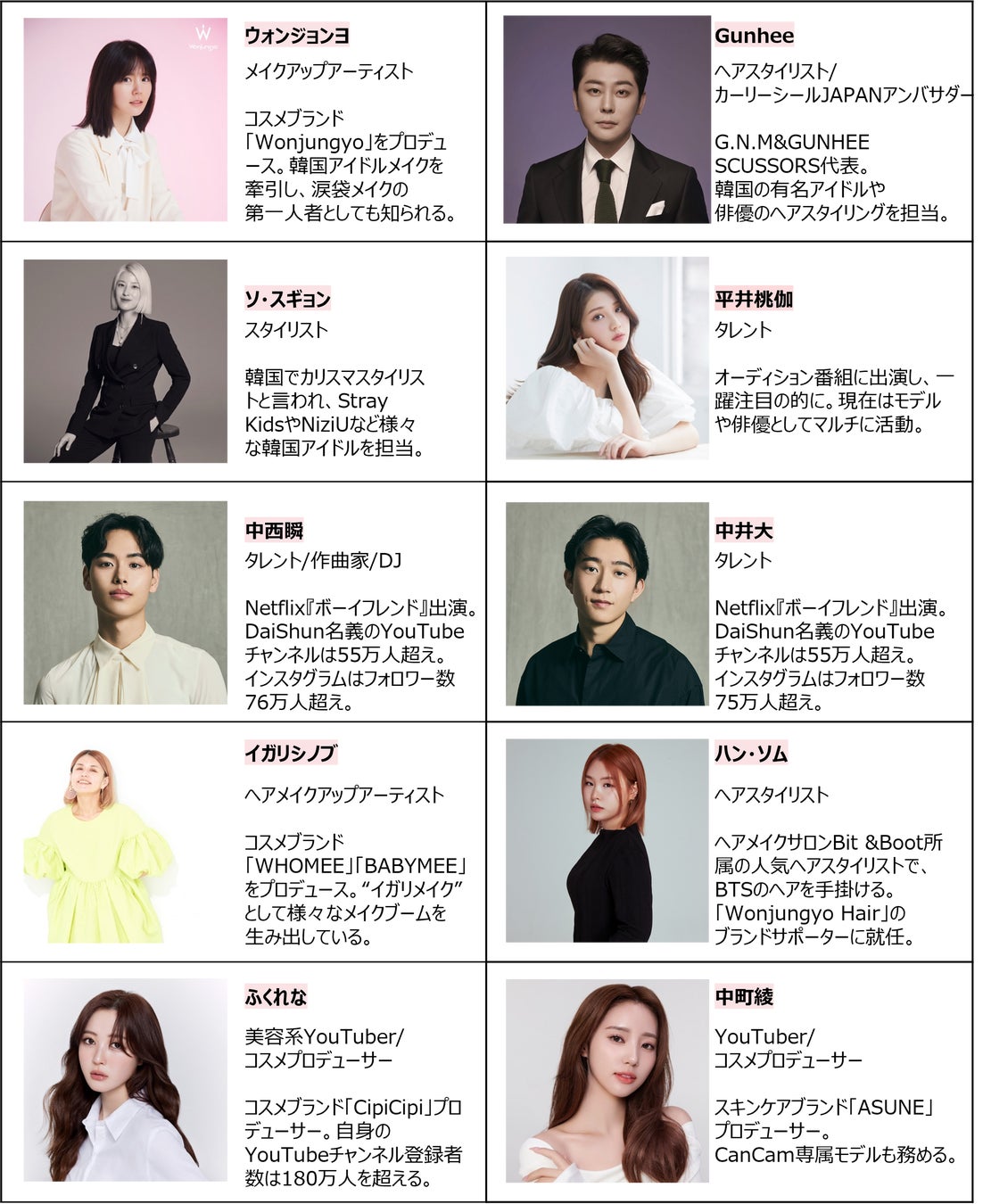 製品を評価する審査員として、日本から大人気ヘアメイクアップアーティストのイガリシノブさん、美容雑誌の編集長、エディター、ビューティーインフルエンサーとして柏木由紀さん、水越みさとさん、ふくれなさん、ひよんさんが参加。韓国からは大人気メイクアップアーティストのウォンジョンヨさんをはじめ、K-POPアイドルのビジュアルを担当する関係者などが審査員として携わった、 K-Beauty Awardの受賞製品を展示します。