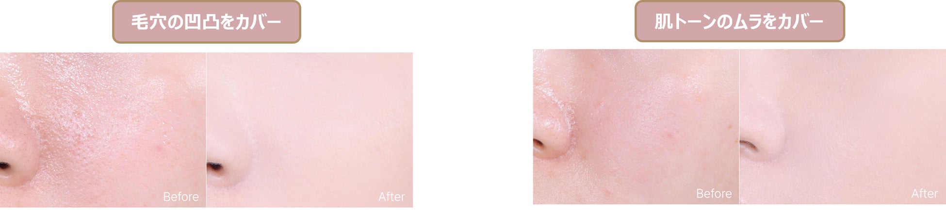 シワにたまることや乾燥を心配せず、肌のキメに沿って薄く密着するフィッティングベース。毛穴の凹凸の間に細かくフィットし、ムラのある肌トーンとキメをまんべんなく整える!自分の肌のようになめらかでさらっとしたブラー肌を演出。