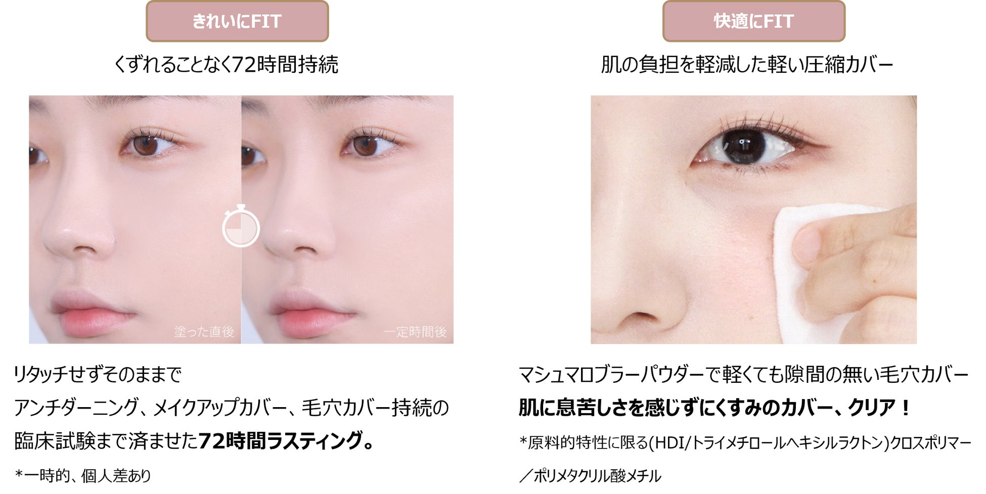 *72時間メイク持続/ 72時間毛穴カバー持続 / 72時間アンチダークニング持続認証完了
