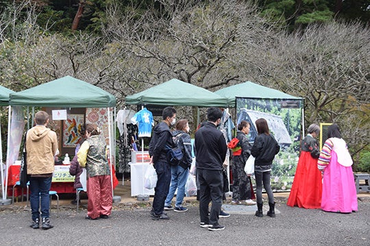 舞台での芸術公演や、伝統楽器による演奏で大盛り上がりのなかで、グルメも盛りだくさん。韓国のチヂミやトッポッキなどの定番屋台グルメをはじめ、日韓グルメの飲食ブースが出店し、熱海梅園内で美味しい料理を堪能できます。