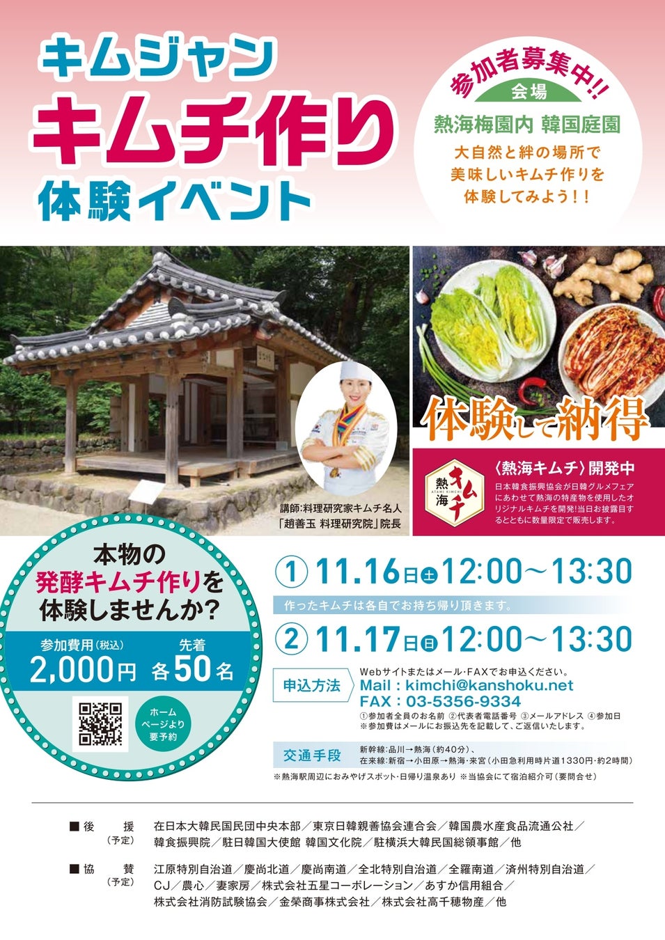 また本イベントは公益財団法人 韓昌祐・哲文化財団の助成を受けており、行事の開催とともに熱海の地域ブランドとしての「熱海キムチ」の開発を進めています。