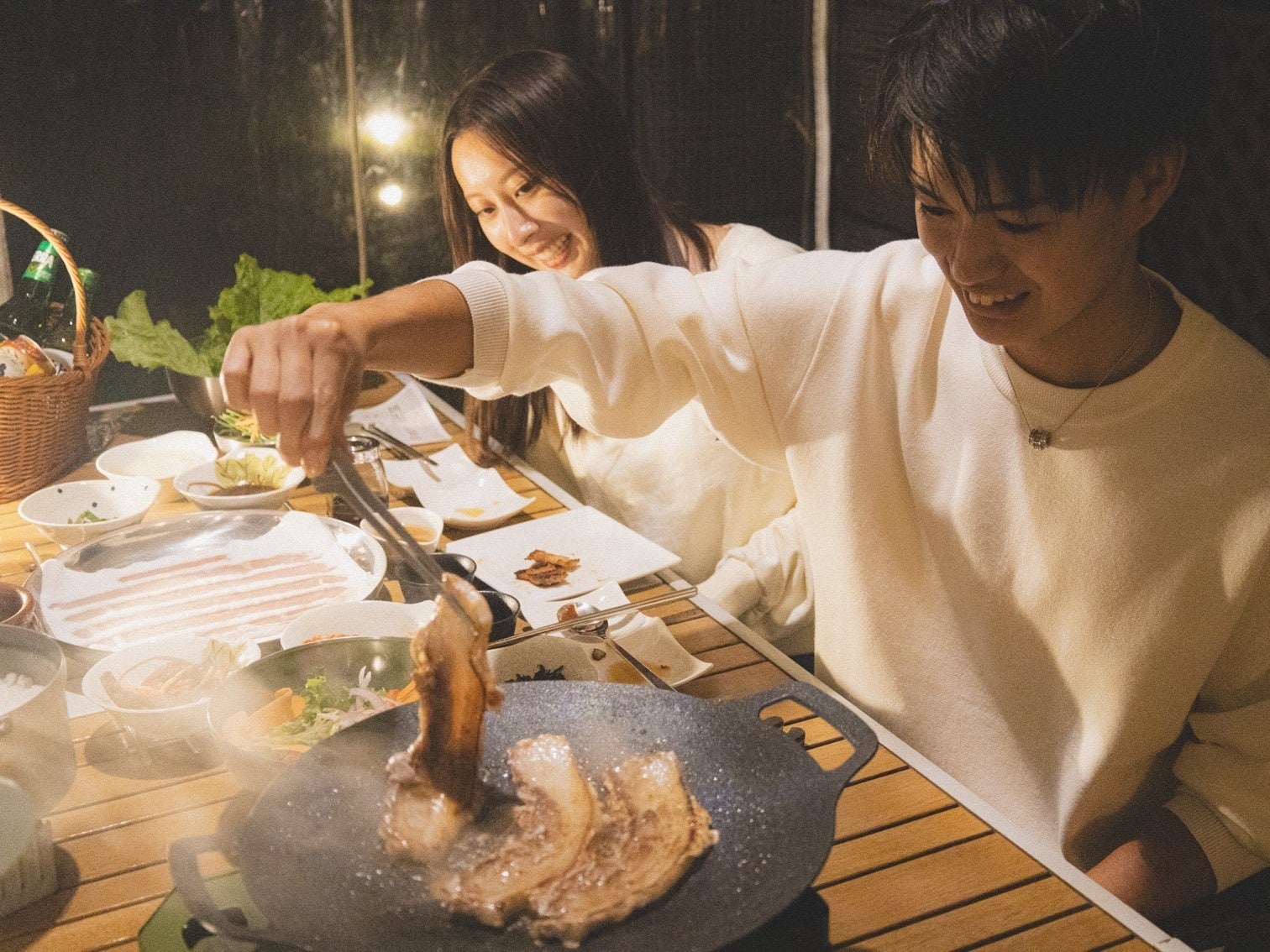 「おうち韓国を ちょっといい場所で」のコンセプトをそのままに、よりTHE FARMにおける選択肢を広めるべく、要望の多かったグランピング泊プランを10月より発売開始いたしました。秋風が気持ちよく、星空がさらにクリアになったこの季節、アウトドアライクなグランピング泊で、もうひとつの”ちょっといい場所”をお楽しみください。