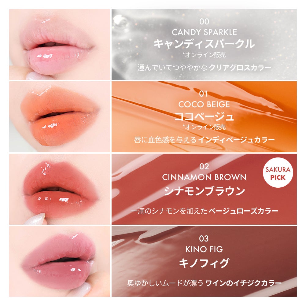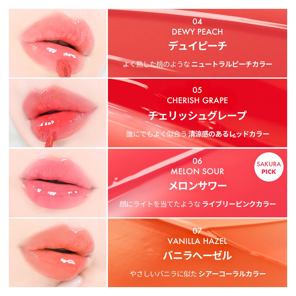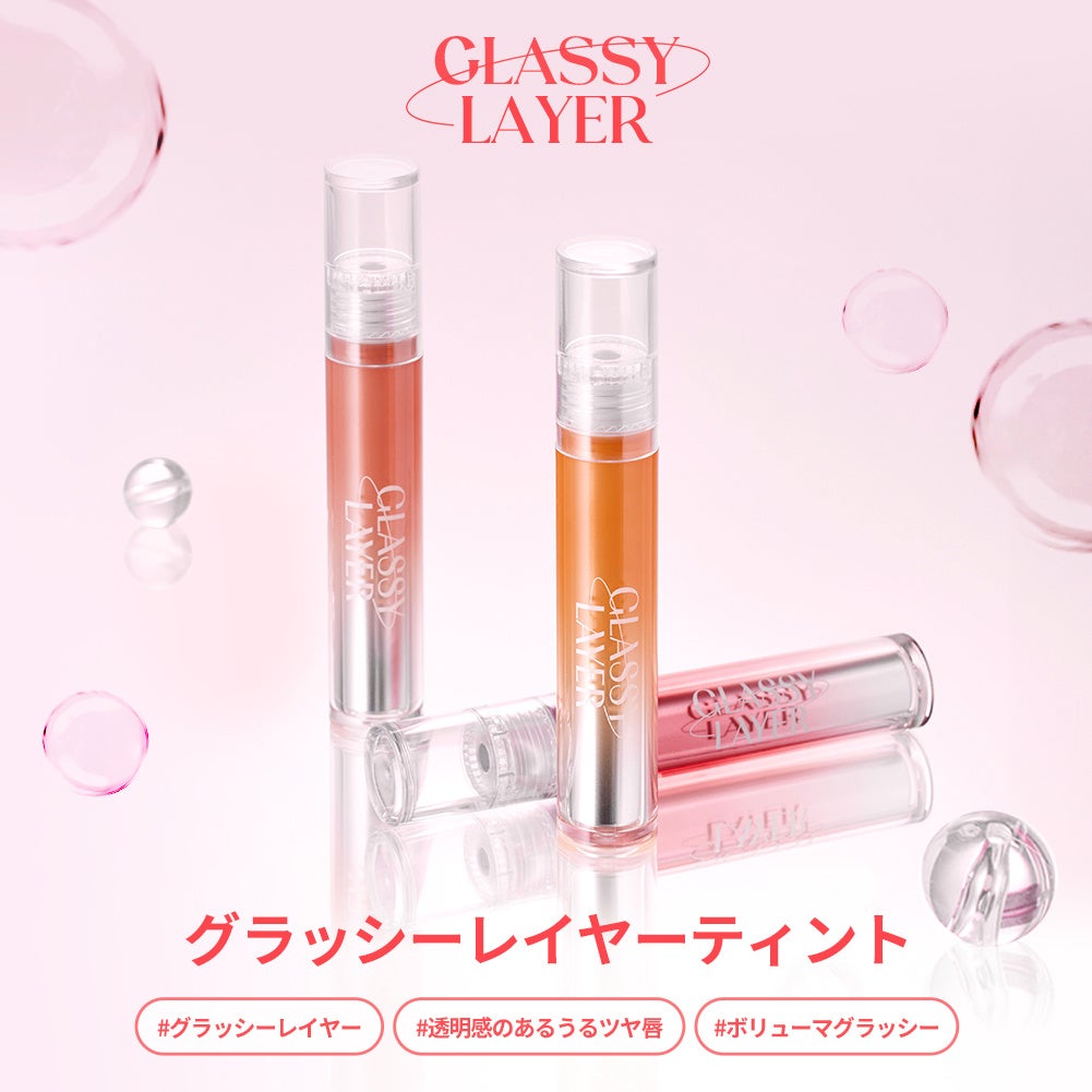 「グラッシーレイヤーティント」は、2024年8月に韓国で発売された人気のアイテムです。ティント効果で色持ちがよく、さらにグロスを塗ったようにぷるぷるの唇に仕上がります。