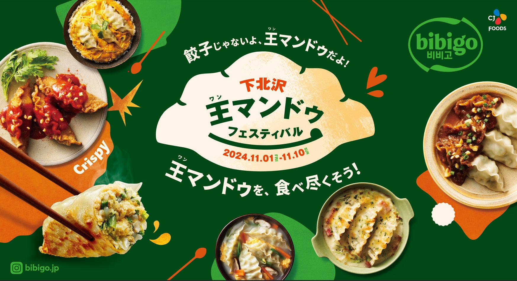 CJ FOODS JAPAN株式会社は、下北沢周辺の飲食店34店舗と協業し、グローバル韓食ブランドbibigoの看板商品である「王マンドゥ」の様々なコラボメニューが楽しめる「bibigo 王マンドゥフェスティバル」を、2024年11月1日~10日まで開催いたします。