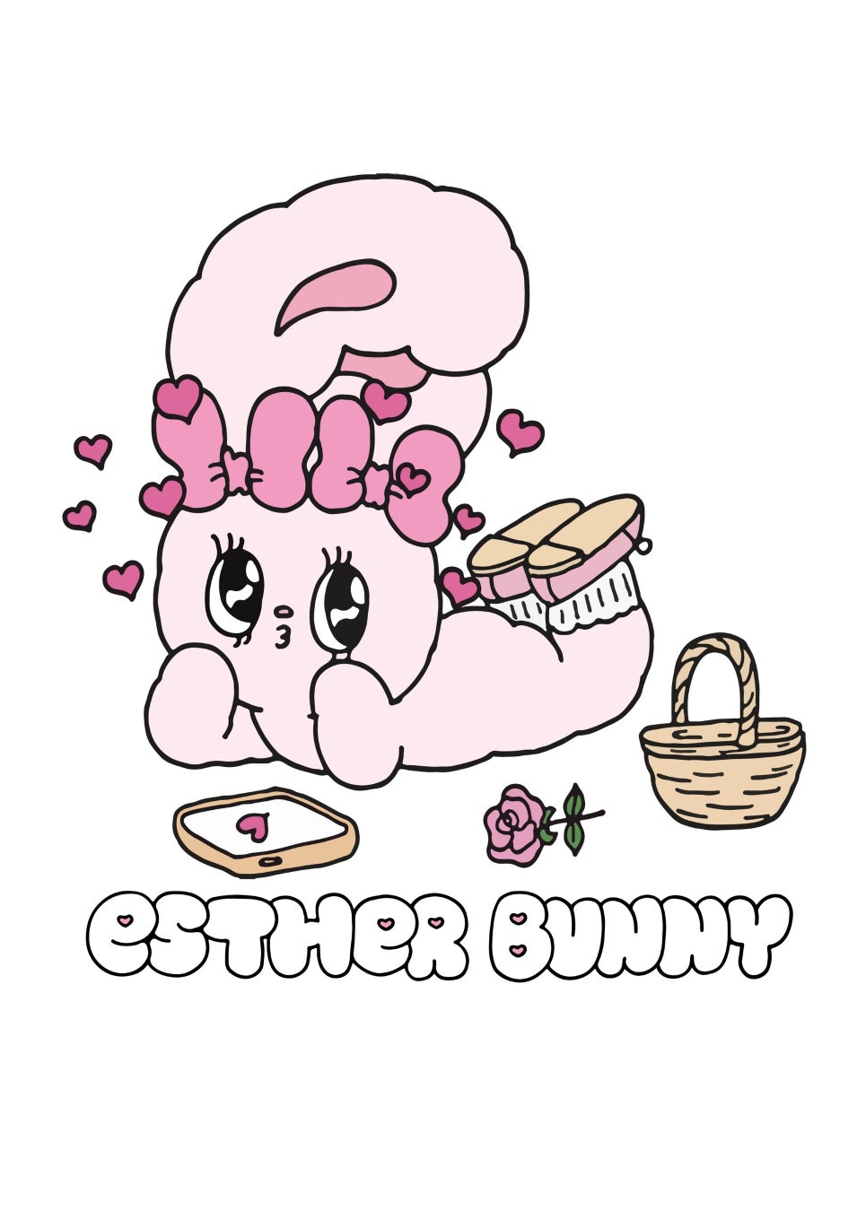 韓国系アメリカ人であるEsther Kim氏がデザインした、POPでガーリーなテイストのうさぎのキャラクターです。ロサンゼルスで生まれ、10代を東京で過ごしたEsther Kim氏が描く、多様な文化や価値観に触れた経験から紡がれる、独特の世界観が大きな魅力。