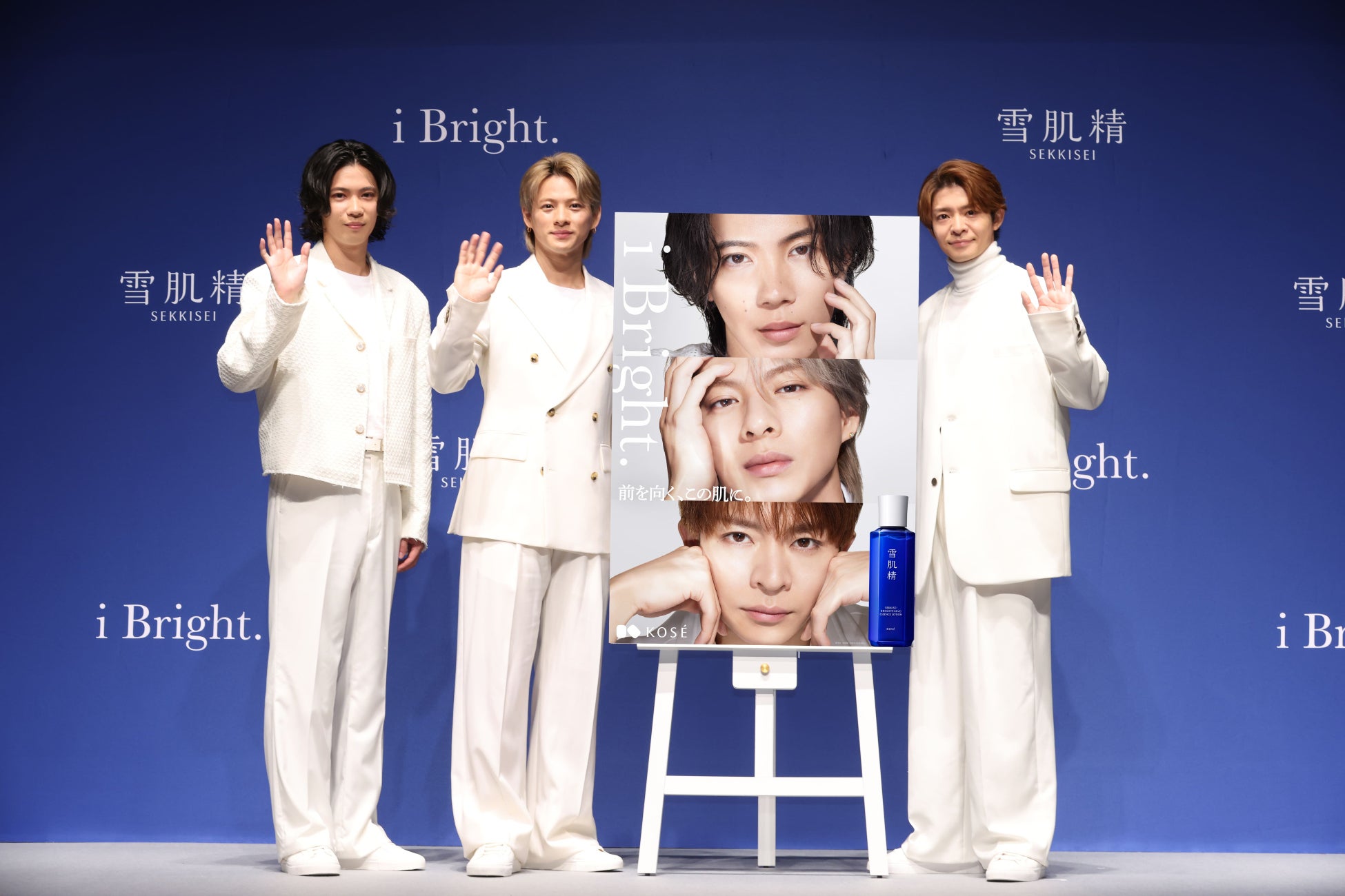当日は、今回、『雪肌精』の新たなグローバルブランドミューズに就任した、世界へ躍進するアーティスト『Number_i(平野紫耀・神宮寺勇太・岸優太)』さんが揃って登壇。 Number_iの3人より、新ミューズ就任にあたってのそれぞれの想いや意気込み、新TVCM 『i Bright.-前を向く、この肌に。-』篇の撮影にあたり、「i Bright.」というキーメッセージを聞いたときに感じたこと、「i Bright.する瞬間№1」などが語られました。さらに、3人の「普段のスキンケア」についてのトークでも盛り上がり、最後には、『雪肌精』の新ミューズとして、これからさらに、新・『雪肌精』でどんなお肌を目指していきたいかについても宣言いただきました。