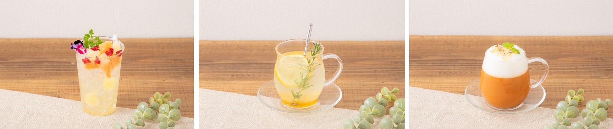 ファームで収穫した野菜をたっぷり使用した、ヘルシーな色とりどりのフードやデザートなどフォトジェニックなメニュー、期間限定でお花のシロップで華やかさを味わえるフロートや、ゆず・ジンジャーをベースにしたドリンクなど、見て楽しい・食べて美味しいスペシャルなメニューをご用意いたしました。