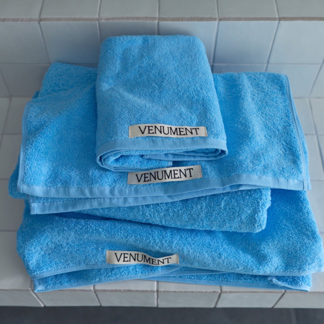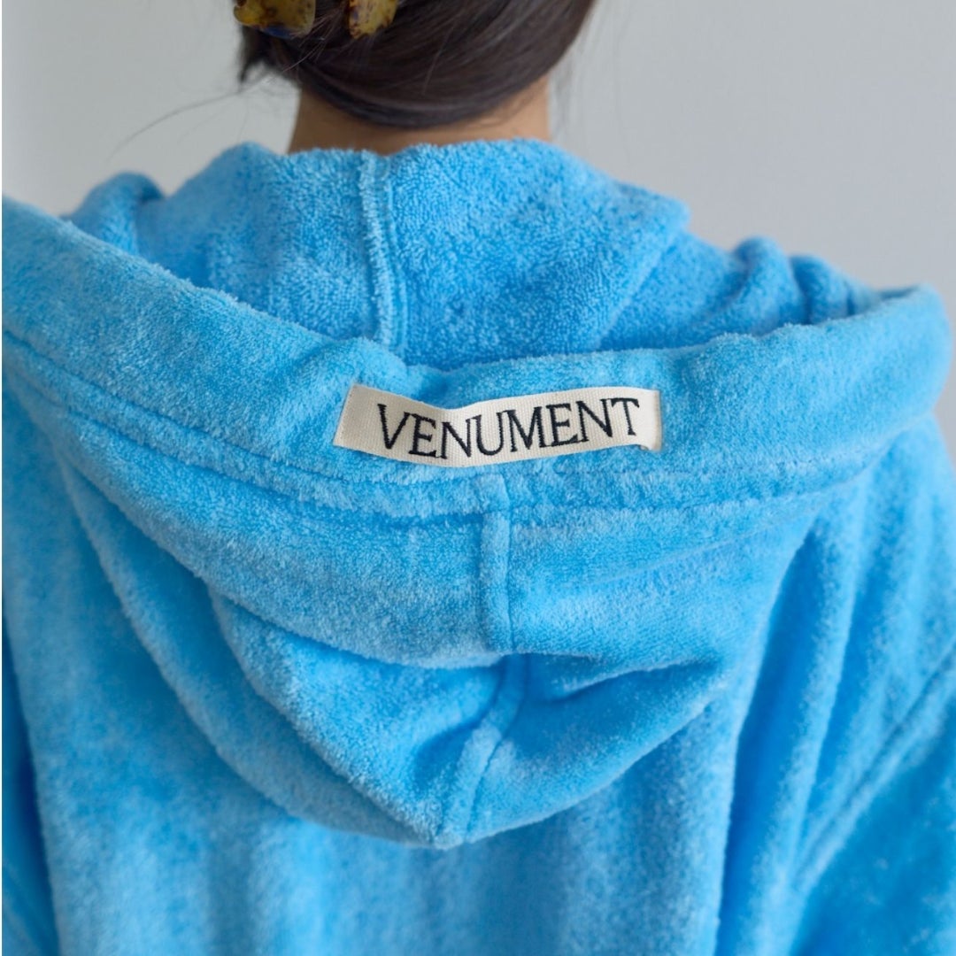 「VENUMENT」のシグネチャーカラーであるブルーの生地にキャンバス地のロゴがポイント。