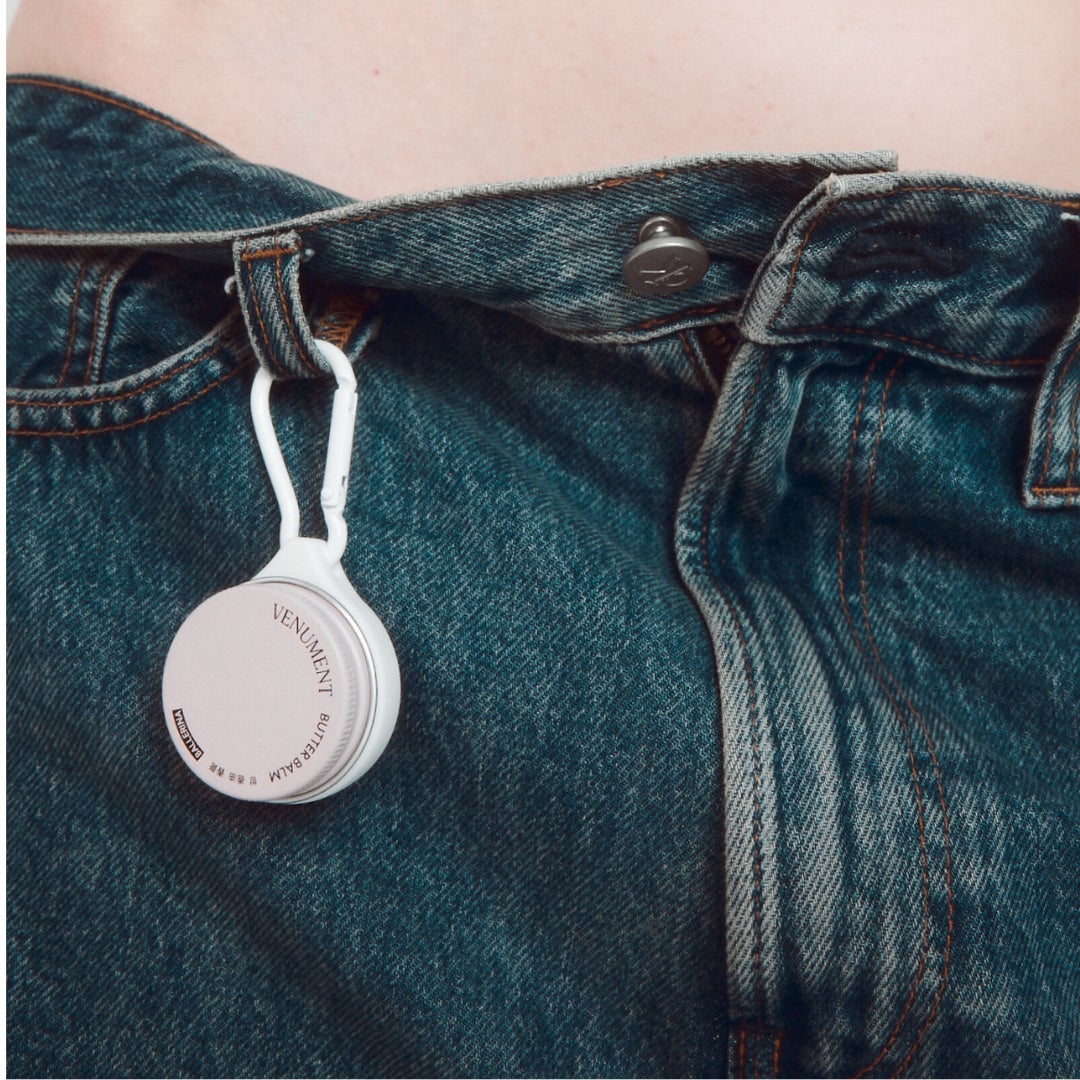 バターバームに、キーリングとステッカー、アプリケーターがセットになったアイテム。シリコンデザインのキーリングにバームをセットすれば、よりファッショナブルに持ち歩けます。