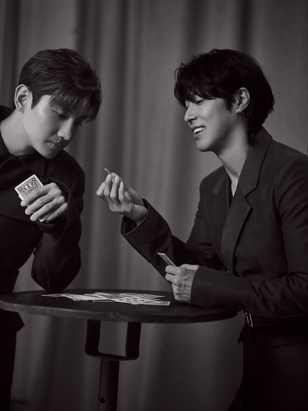 チャンミン「僕もユンホに対して抱く想いは同じです。10代の頃って、夢に向かって無我夢中に走り続けているからこそ、すごく熱いですよね。情熱的で、すごくまぶしいんです。でも年齢を重ねていくほどに、そういった積極性がどんどん失われていくのが普通だと思うんです。それは、人生に安定感を求めたり、守るものが増えて挑戦的ではなくなるから。ある意味、自然なことで仕方のないことだと思っていて。でもユンホは、10代の頃からずっと積極的で情熱的。いまだに当時から何も変わっていないんですよ。僕が10代のときから抱いていたユンホの印象は、いまもいい意味でまったく変わっていない。もちろん、現状や現実を受け入れて、より強く進んでいる姿も見ていますし、その姿を見ていると、どんな壁も乗り越えて前に進もうと背中を押してくれる気がするんですよね。その熱さは、本当に尊敬しています」