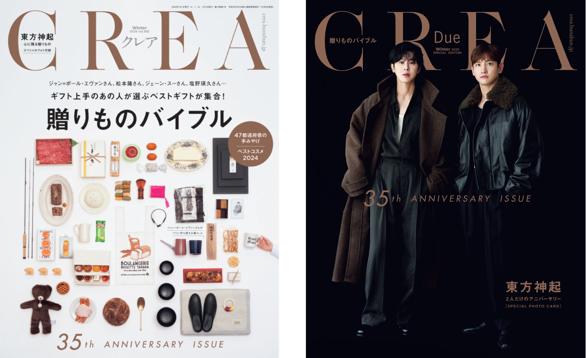また、表紙違いの通常版と特別版をW刊行。特別版(『CREA Due』2025年冬Special Edition)のカバーには、間もなく日本デビュー20周年を迎える東方神起が登場。一軒家に集まって記念日を祝う、「2人だけのアニバーサリー」をテーマに撮影しました。通常版(全8ページ)と特別版(全16ページ)では異なるインタビューを掲載しています。