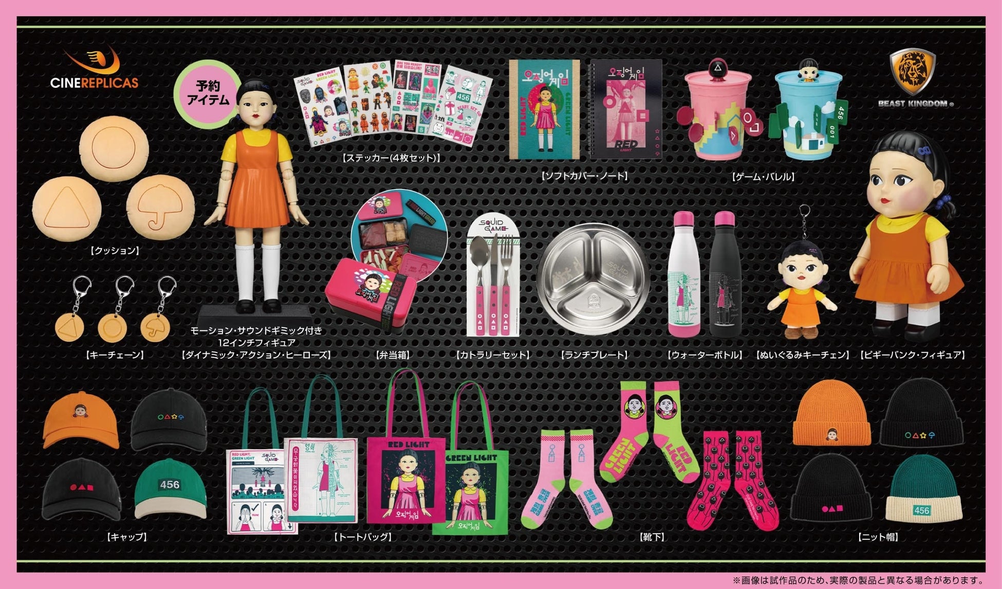 大人気のホットトイズ「コスビ」シリーズより、主人公のソン・ギフンやピンクガードなどのデフォルメフィギュアが登場! 「だるまさんがころんだ」ゲームでおなじみのヨンヒ人形は、高さ約30cmのXLサイズにもラインナップ。約40cmの大きなぬいぐるみにも注目です。