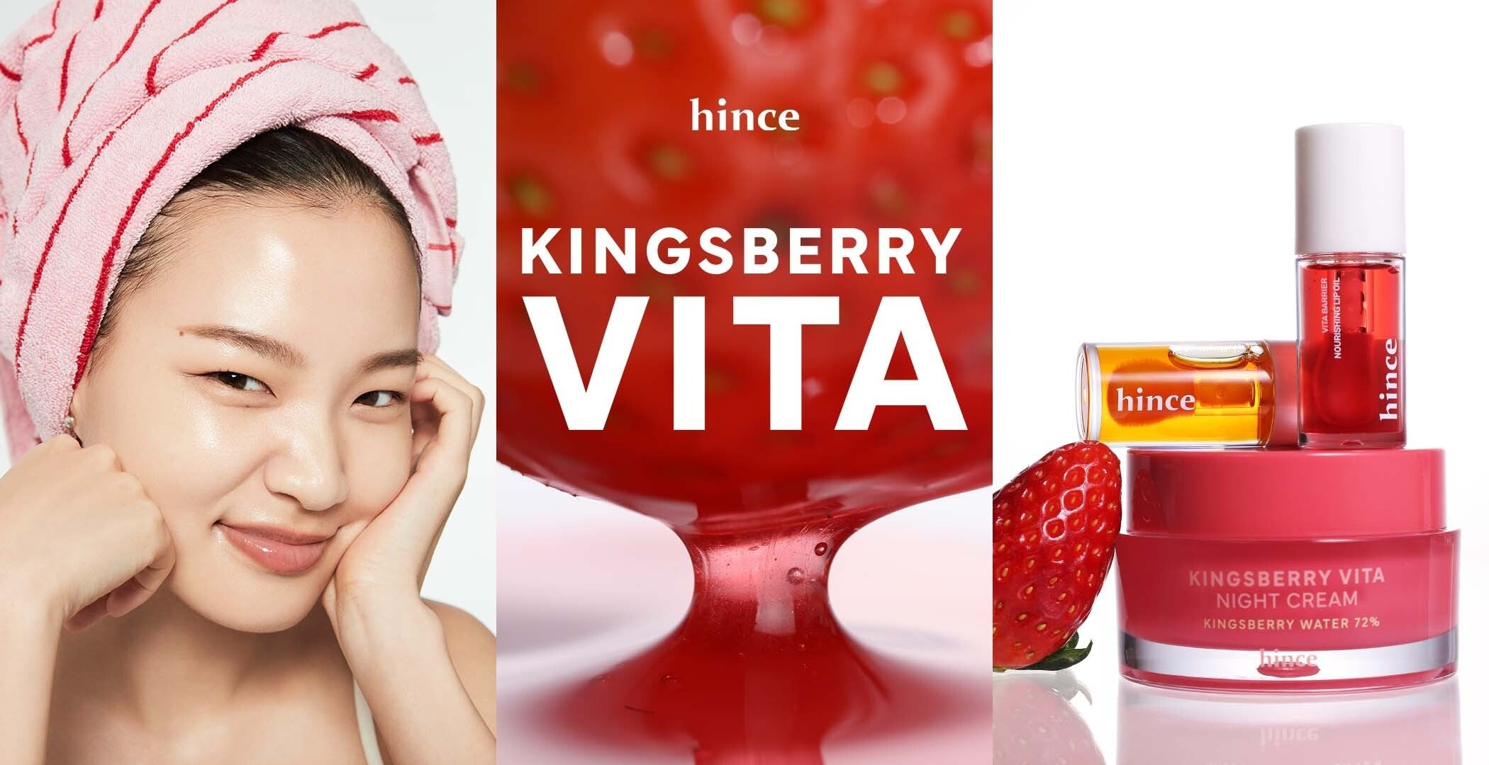 ヒンス初のスキンケアラインは、ビタミンと抗酸化成分が豊富※1 な「キングスベリー」に着目し開発しました。さっと塗って寝るだけで、毎朝の❝メイクノリいい❞を叶える「キングスベリービタナイトクリーム」とスッと密着して、いつでもどこでも唇ビタミン※2 ケアが可能な「ビタバリアナリッシングリップオイル」のラインアップであなたのスペシャルケアをより一層楽しい時間にしてくれます。