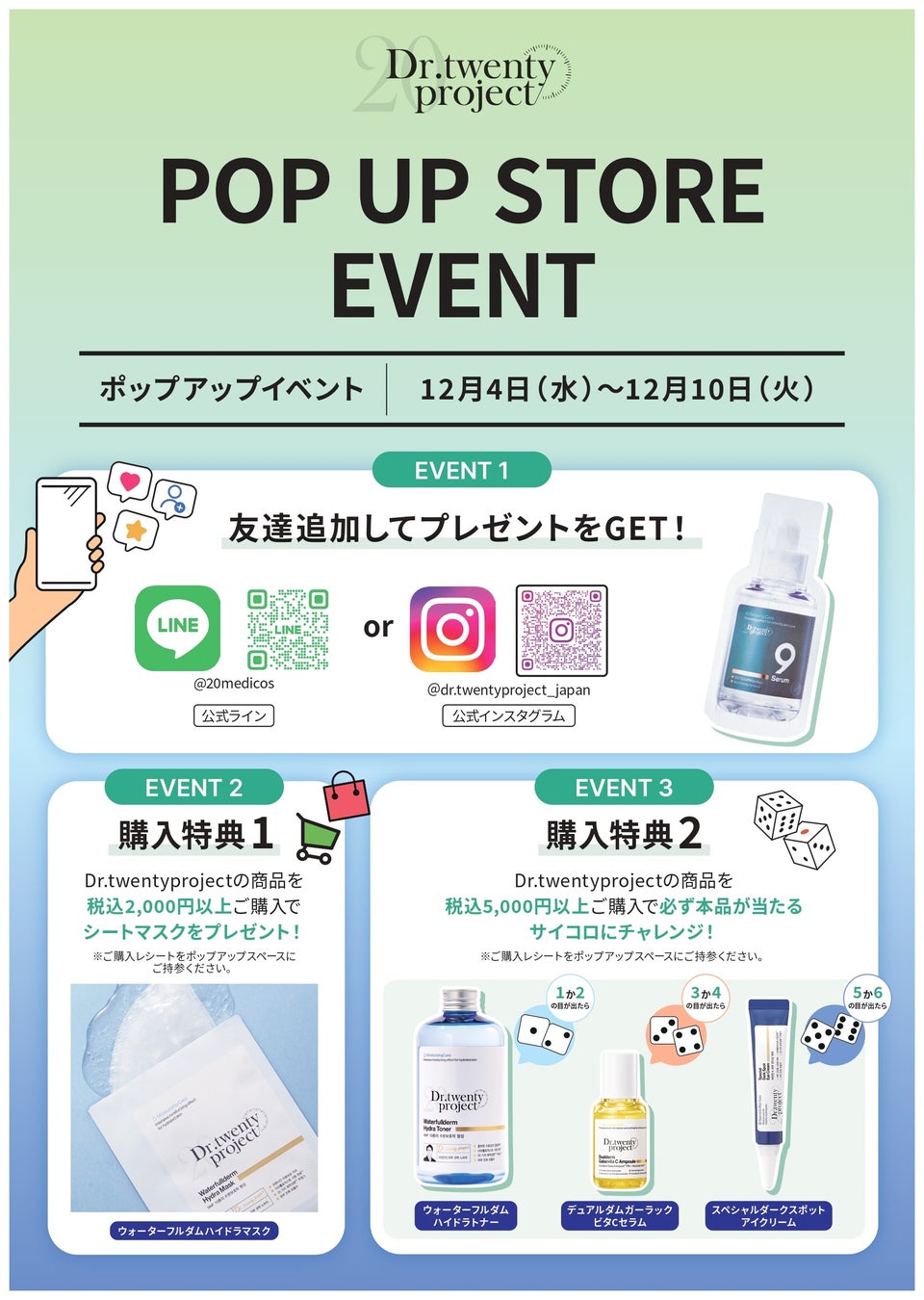 イベント3 『Dr.twenty project』の商品を税込5,000円以上ご購入で現品が必ず当たるサイコロチャレンジに参加!!