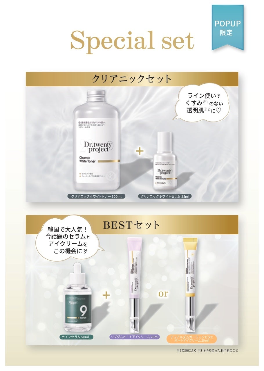 POP UP STOREの開催を記念し、『Dr.twentyproject』の人気商品を組み合わせたお得なセットを販売いたします。