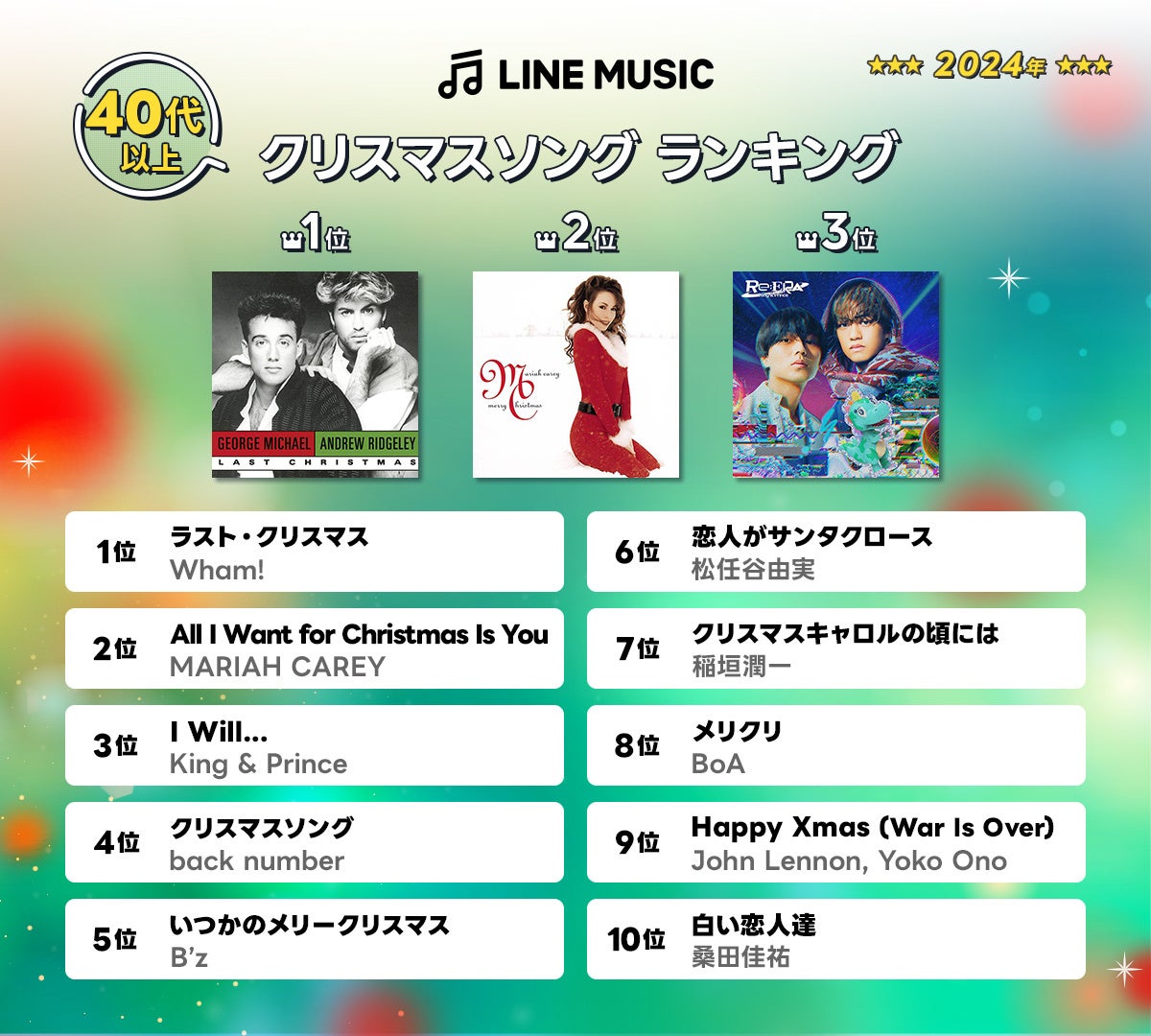 <LINE MUSIC 2024年 / 40代が選ぶ「クリスマスソングランキングTOP10」>