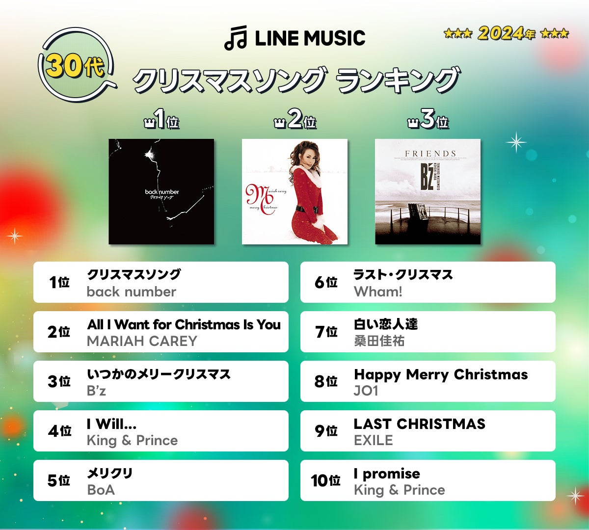 <LINE MUSIC 2024年 / 30代が選ぶ「クリスマスソングランキングTOP10」>
