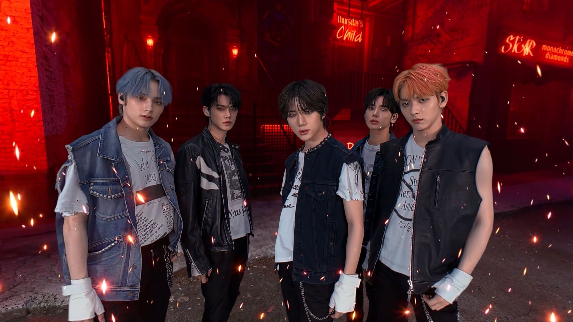 TOMORROW X TOGETHERはHYBE MUSIC GROUPレーベルのBIGHIT MUSICに所属するSOOBIN、YEONJUN、BEOMGYU、TAEHYUN、HUENINGKAIで結成された、5人組ボーイグループ。グループ名の「TOMORROW X TOGETHER」は「それぞれ違う君と僕がひとつの夢で集まって共に明日を作って行く」という意味を持つ。