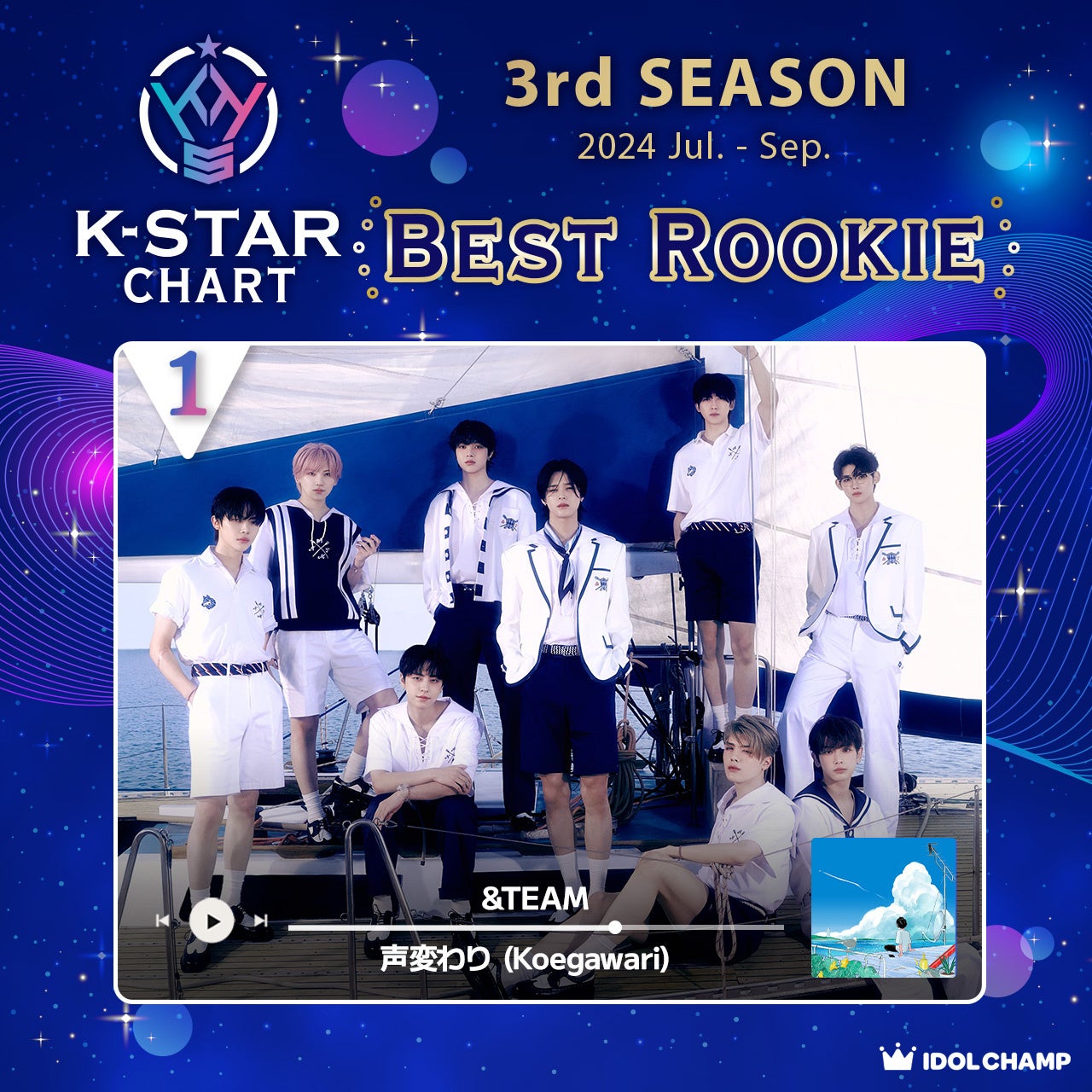 株式会社ゲームオンが運営しておりますK-POPアイドル応援アプリ『IDOL CHAMP』内の投票機能と連動した日本国内初のラジオ番組「K-STAR CHART presents POP-K TOP10 Friday」(TOKYO FM)の12月20日(金)放送回に『K-STAR CHART 3rd Season 投票』で「Best Rookie」部門1位を獲得した&TEAMが受賞コメントで登場しました。