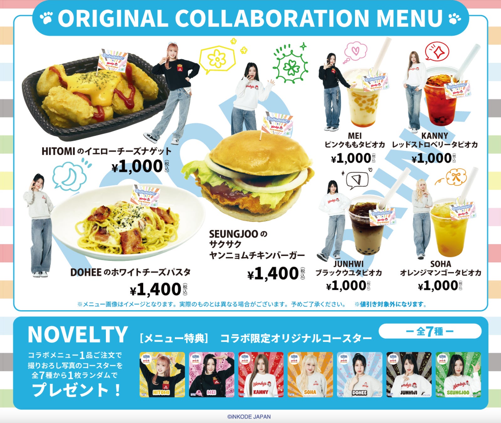 - コラボメニュー1品購入につき、1枚オリジナルコースター(全7種)をランダムでプレゼント!