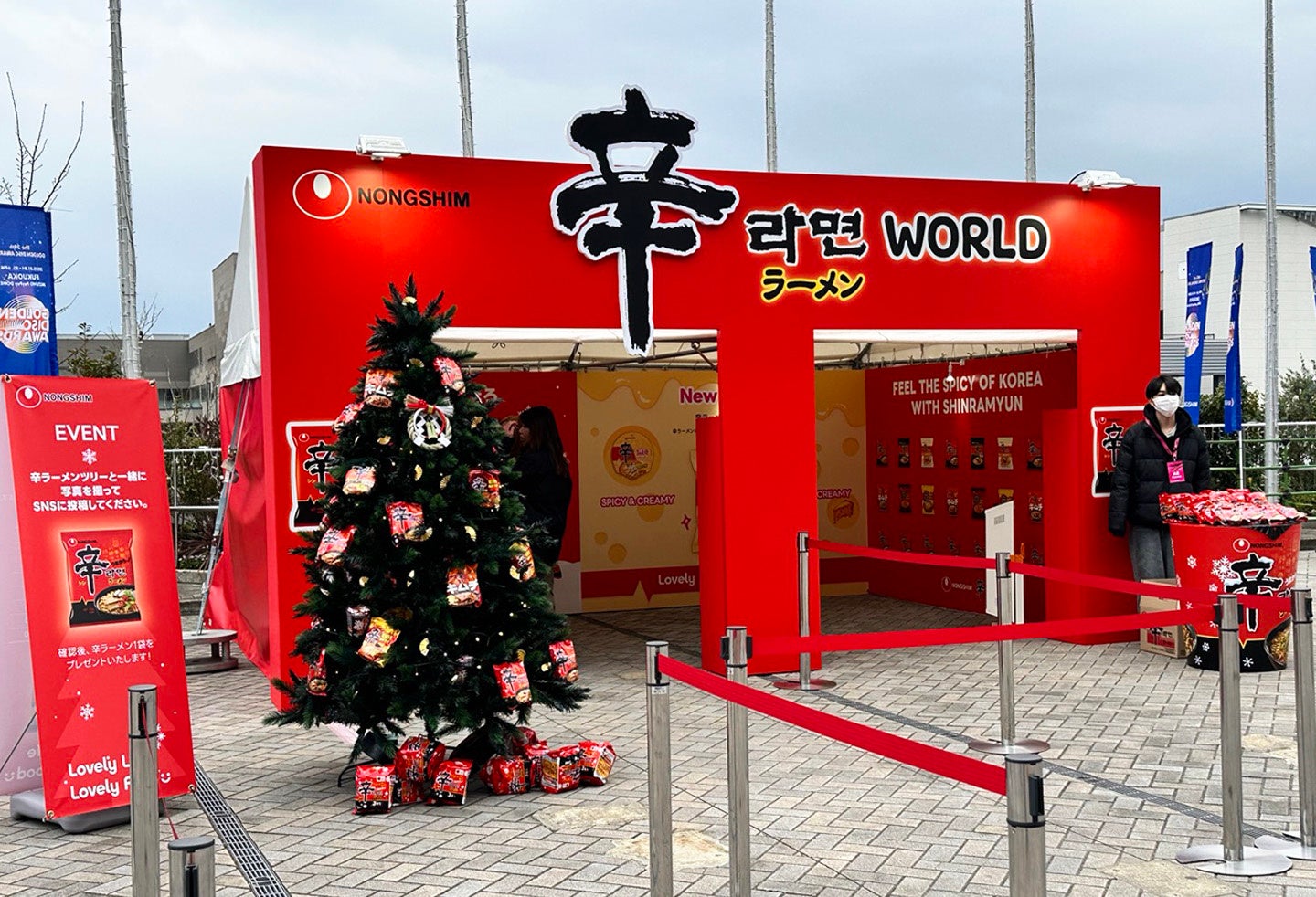会場内には「辛ラーメンブース」が登場。ツリーの形をした辛ラーメンのフォトスポットで写真を撮り、SNSにアップした方に辛ラーメンをプレゼントするSNSキャンペーンを実施しました。