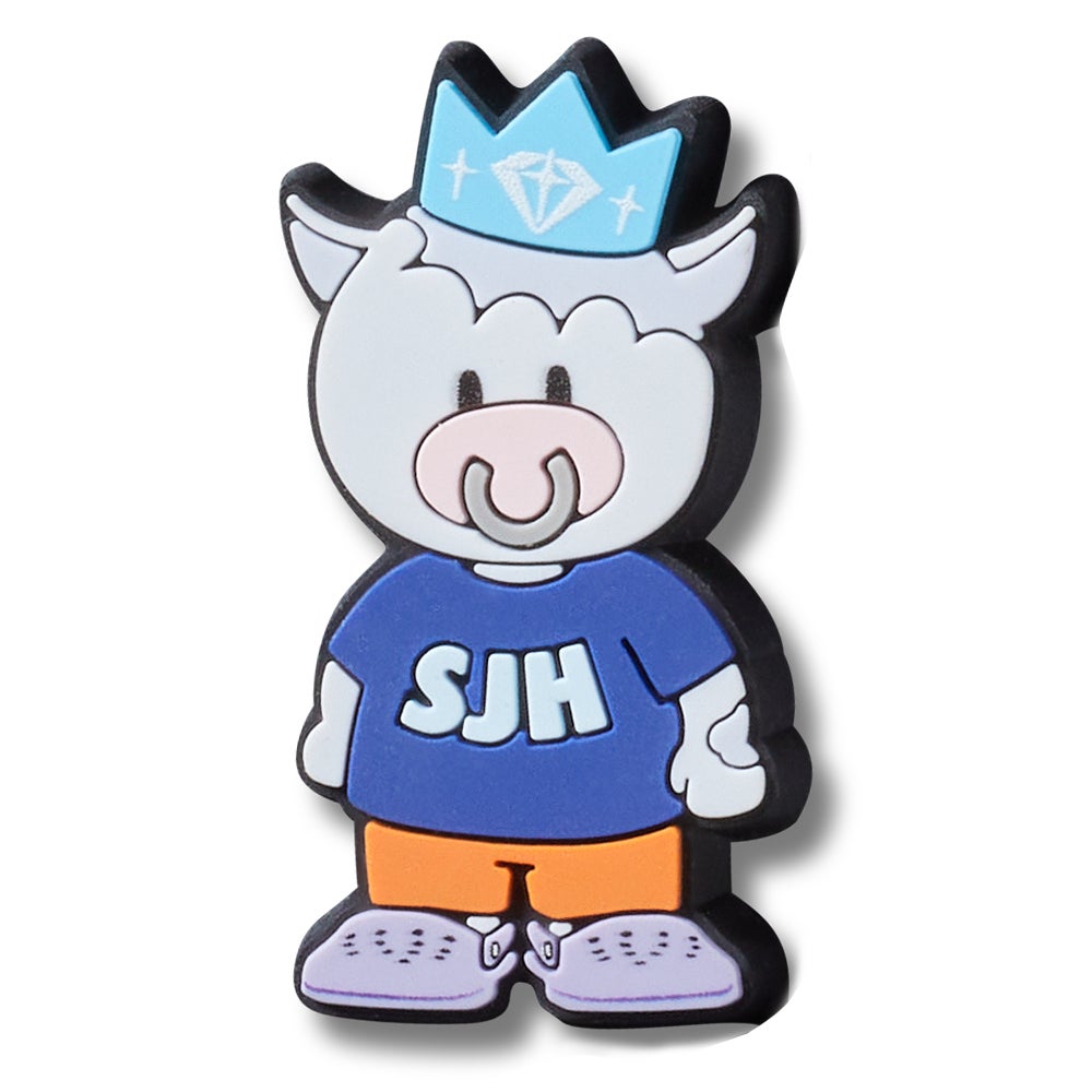 パステル調の色合いで、TREASUREのロゴが施された王冠、牛をテーマにしたパターン、パステルカラーのクラシック クロッグが特徴で、若々しい魅力と個性を体現しています。