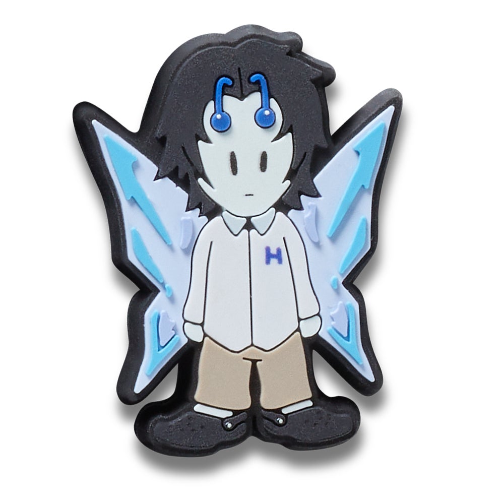 蝶の羽と触角から着想を得たハルトのキャラクターで、青い蝶のディテールが神秘的な雰囲気を演出。イニシャル「H」のシャツとベージュのパンツがポイントです。