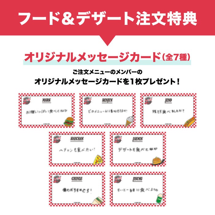 方に、ご注文メニューのメンバーの「オリジナルメッセージカード(全7種)」を1品につき1枚プレゼント。