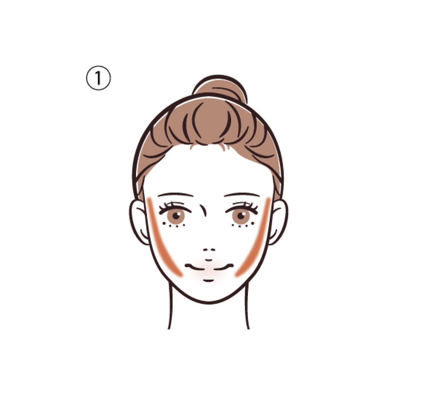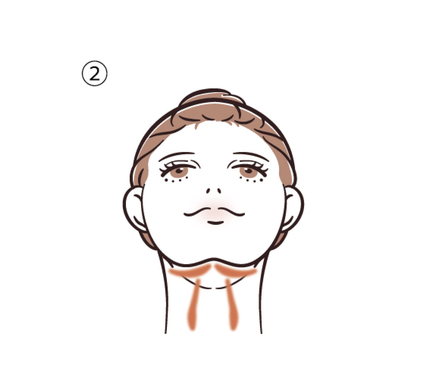 ②あごの下に「介」の字にラインを入れてぼかすと首がすっきりみえて小顔効果※アップ!