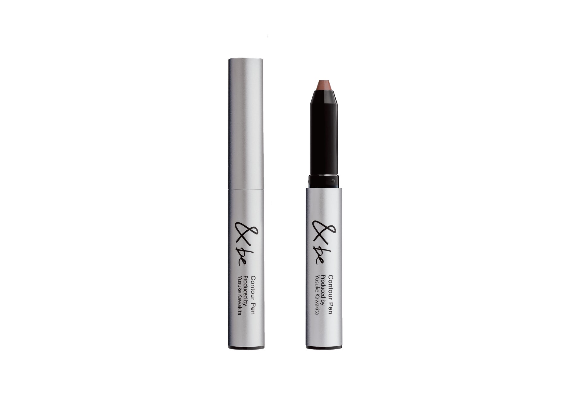 ①「&be コントゥアペン」でなりたいフェイスラインにあわせてラインを引き、「&be おさかなスポンジ ライトブルー」で外側にぼかします。
