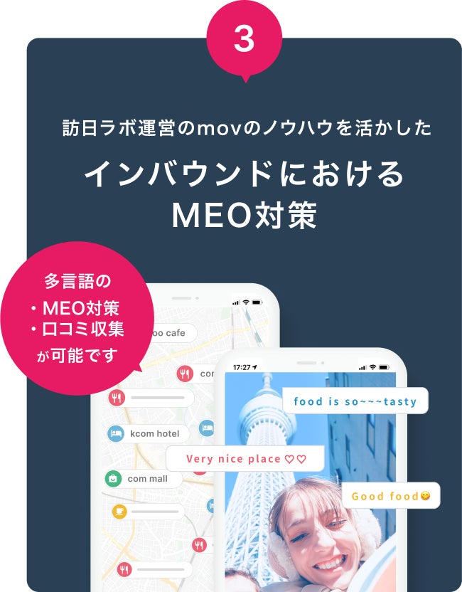 また、口コミコムを提供するmovは、国内最大級のインバウンド総合メディア「訪日ラボ」を運営しており、その豊富な知見やノウハウを活かしてMEO対策をサポートします。