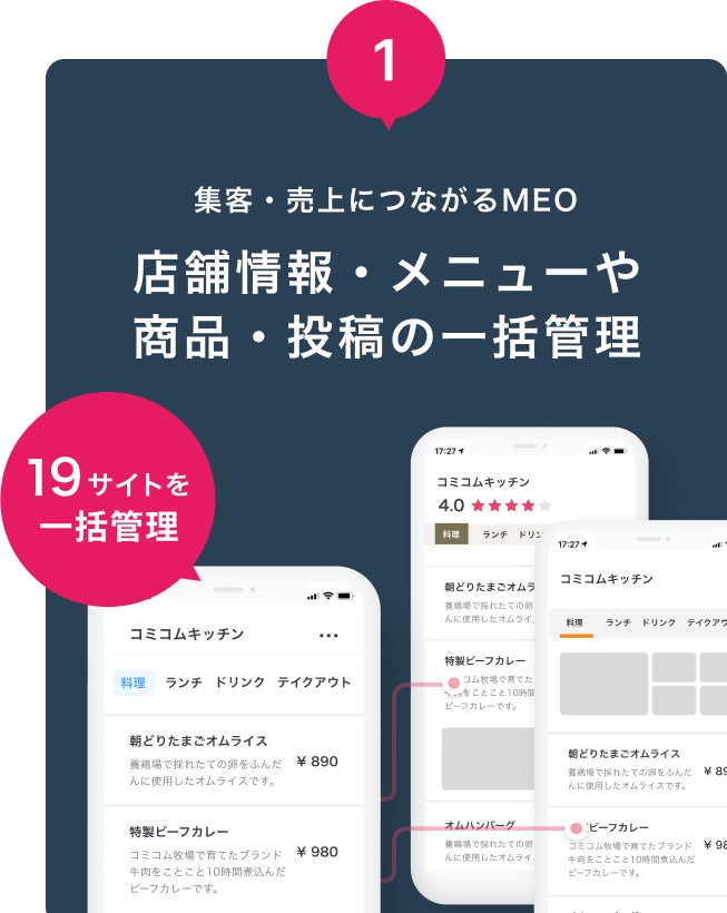 19サイトと連携!店舗情報・メニューや商品・投稿を一括管理