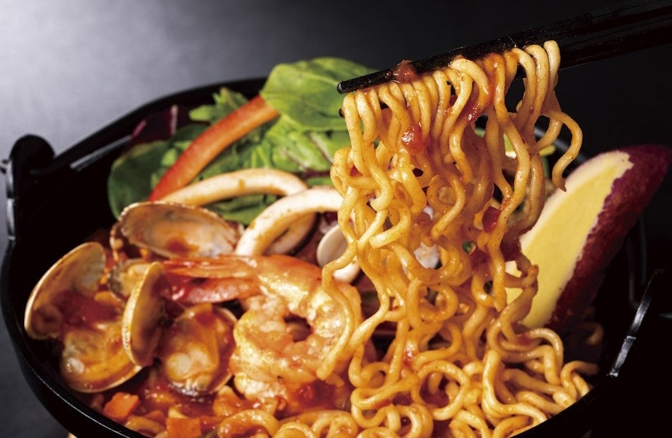 韓国でトレンド!SNSで大バズリのコラボメニューが登場予定。『太陽のヘムル“辛”トマト麺』とは一味違った「辛ラーメン×トマト麺」に、ぜひご期待ください。