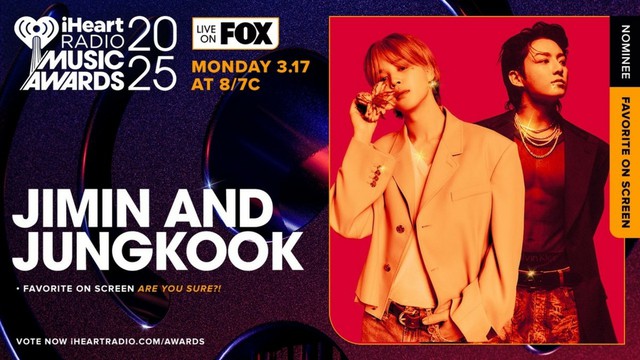 「BTS(防弾少年団)」のJIMINとJUNG KOOKが、アメリカの「iHeartRadio Music Awards 2025」の様々な部門にノミネートされ話題だ。