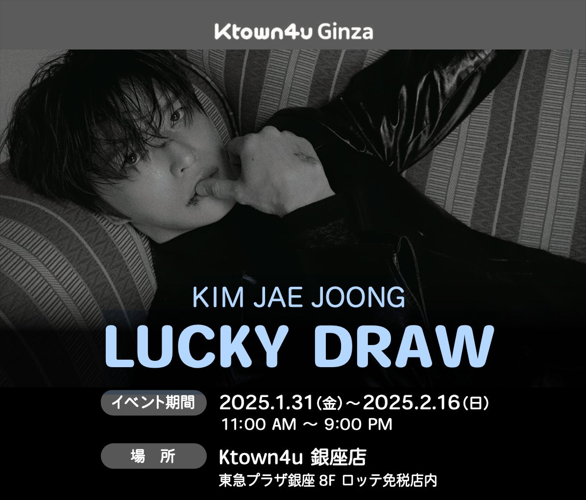 東急プラザ銀座 8F ロッテ免税店内Ktown4u 銀座店では2025.1.31(金)~ 2025.2.16(日)にて「KIM JAE JOONG LUCKY DRAW」を開催いたします。