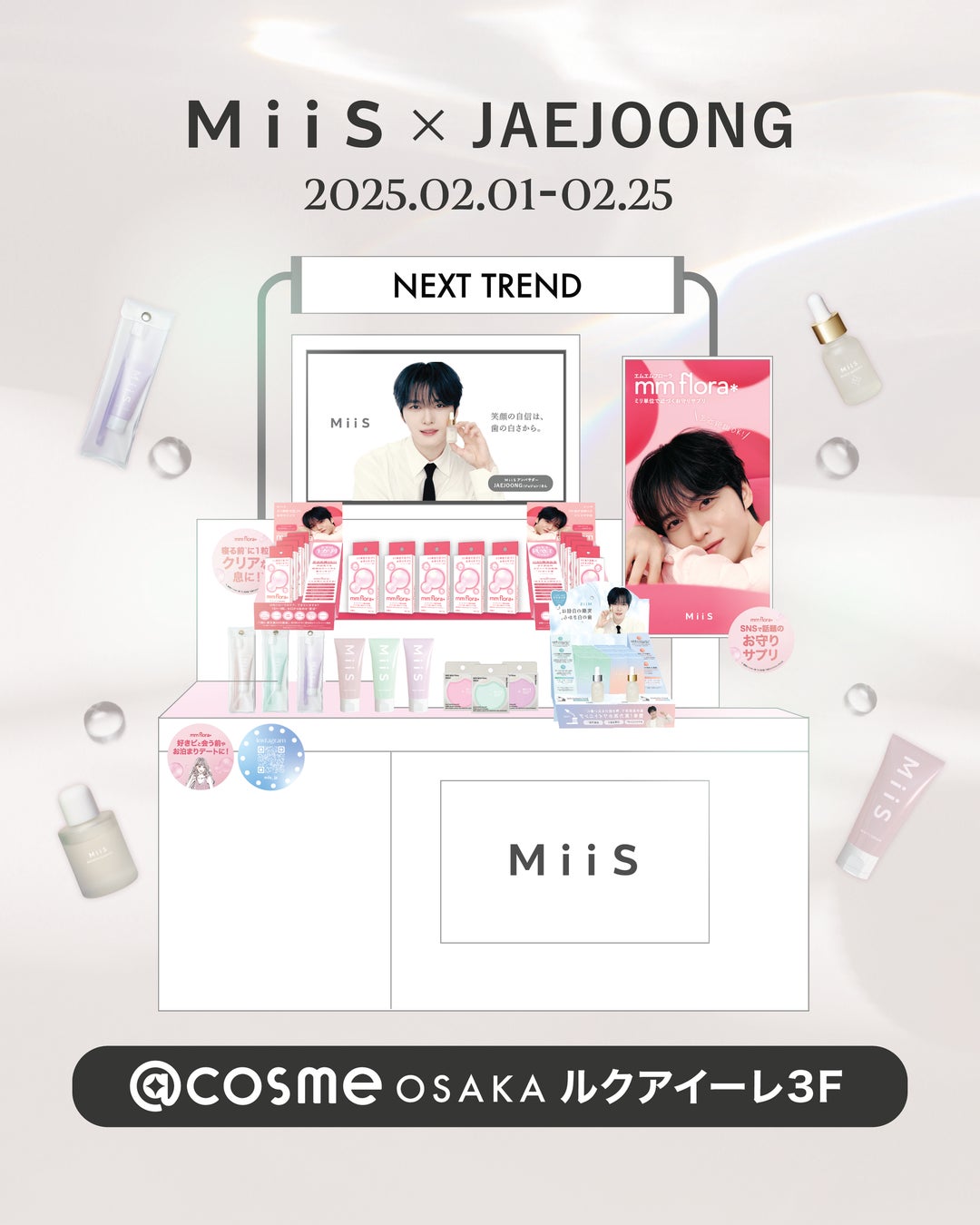 また、2025年2月25日(火)まで@cosme OSAKA NEXT TRENDゾーン内にてMiiS×JAEJOONGのビジュアルショットを展開いたします。
