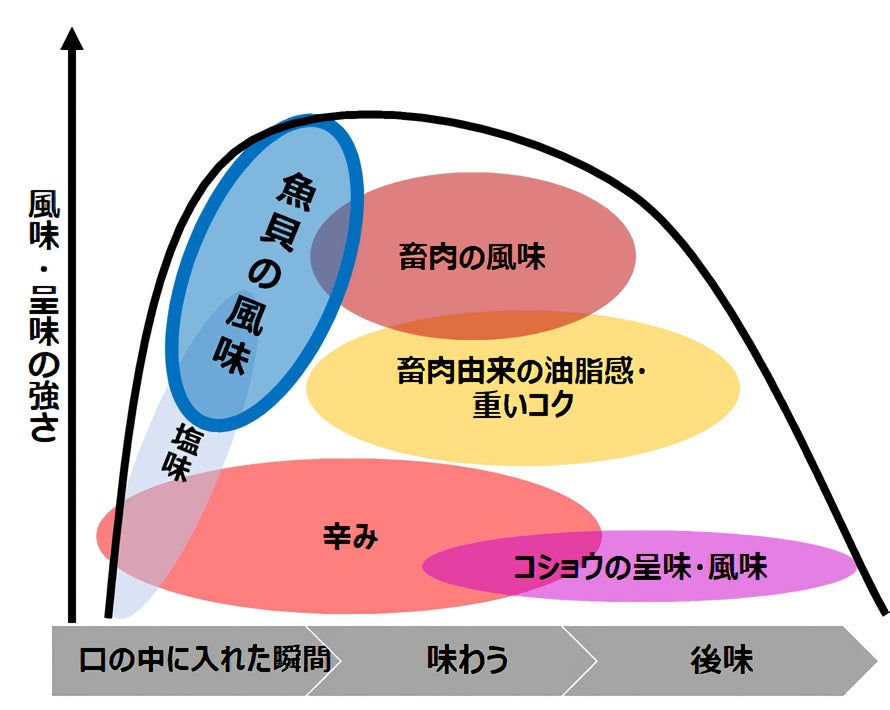 ■スンドゥブを口に含んだ瞬間の強さや持続性を図式化したイメージ図