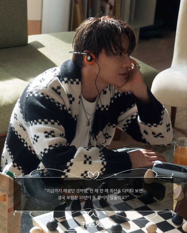 写真には、部屋の中で音楽に聴き入っているジュンスの姿が写っている。窓から差し込む光があたたかさを醸し出している。