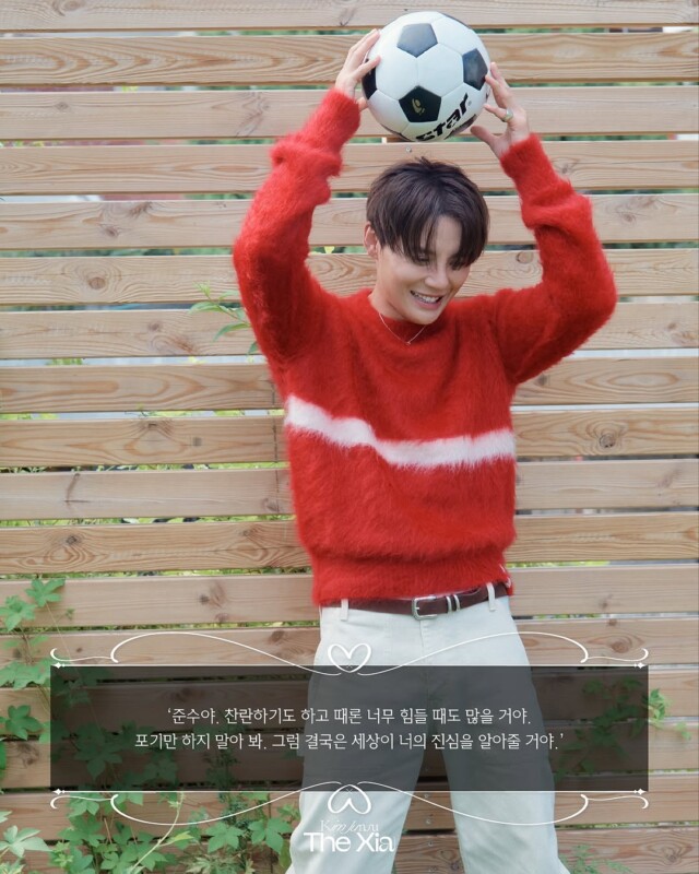 また、窓を背景にして微笑んだり、野外でサッカーを楽しむジュンスの姿なども収められている。