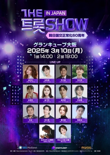 韓日国交正常化60周年を記念し、2024年3月10日(金)に「THE トロット SHOW IN JAPAN」が大阪・グランキューブにて開催されます。(昼公演14:00〜、夜公演19:00〜)韓国初のトロットチャート番組「THEトロットSHOW」や、年末最大の音楽イベント「SBSトロット対戦」の制作チームが日本で初めて手がけるK-トロット公演です。