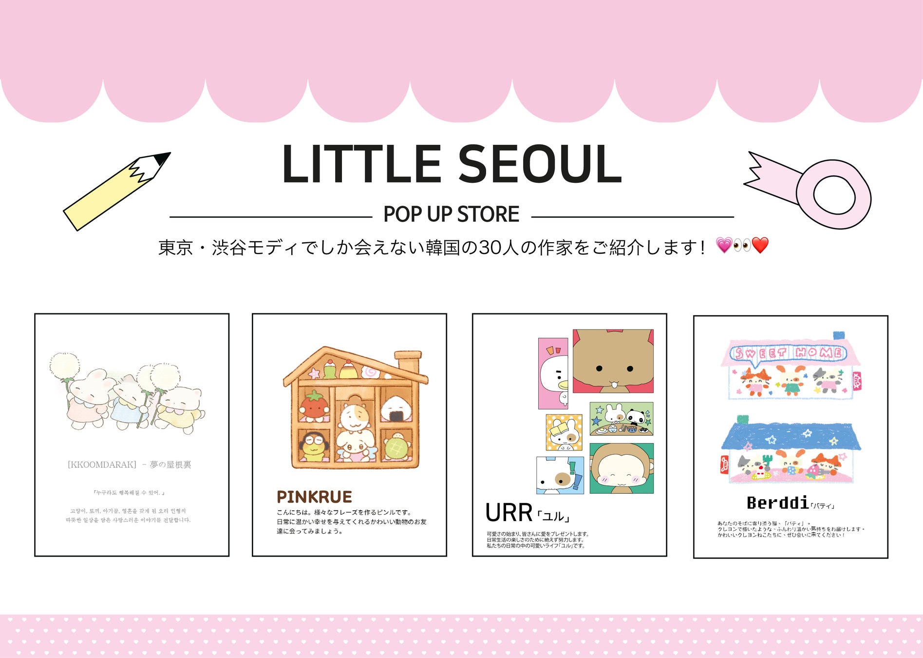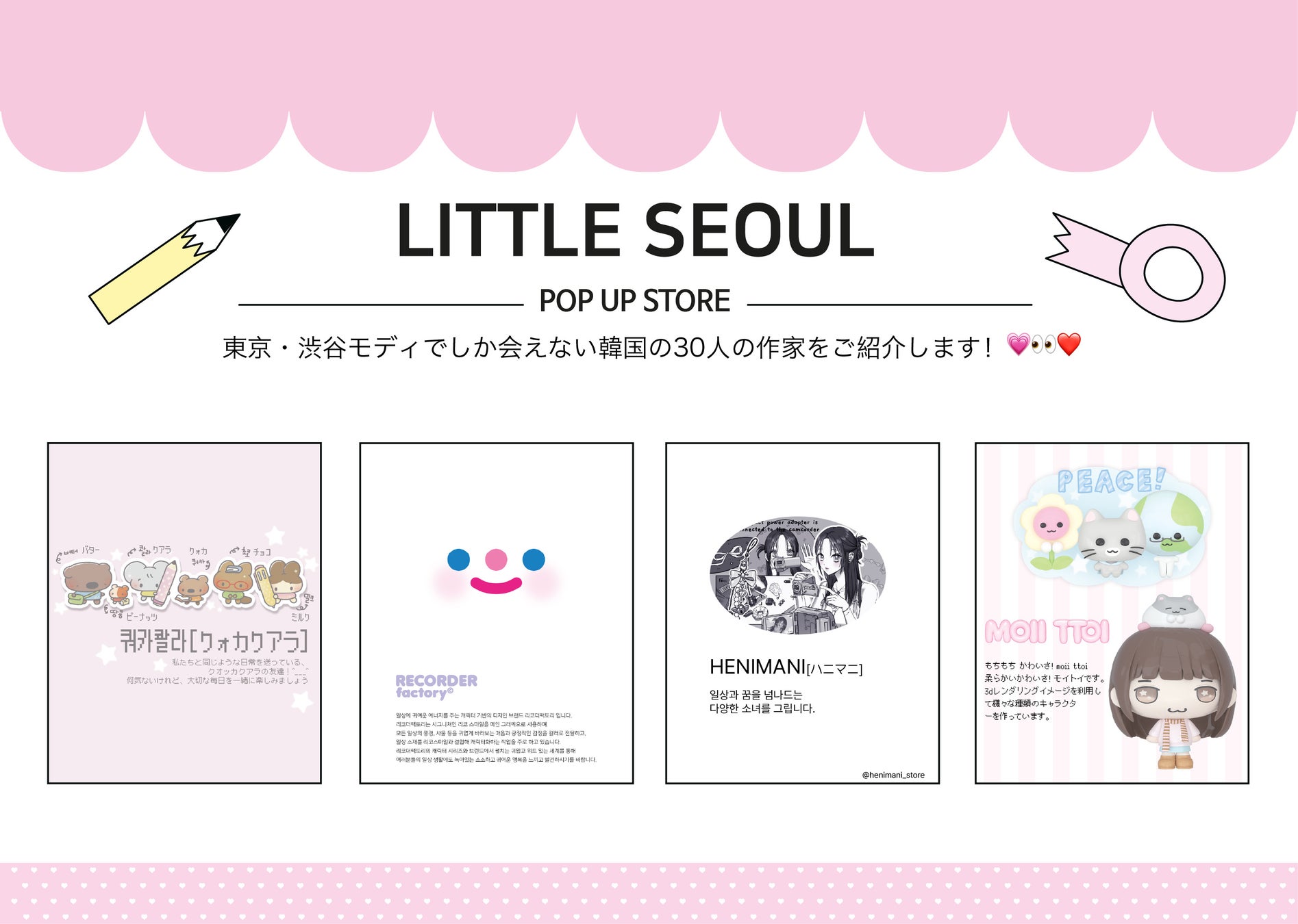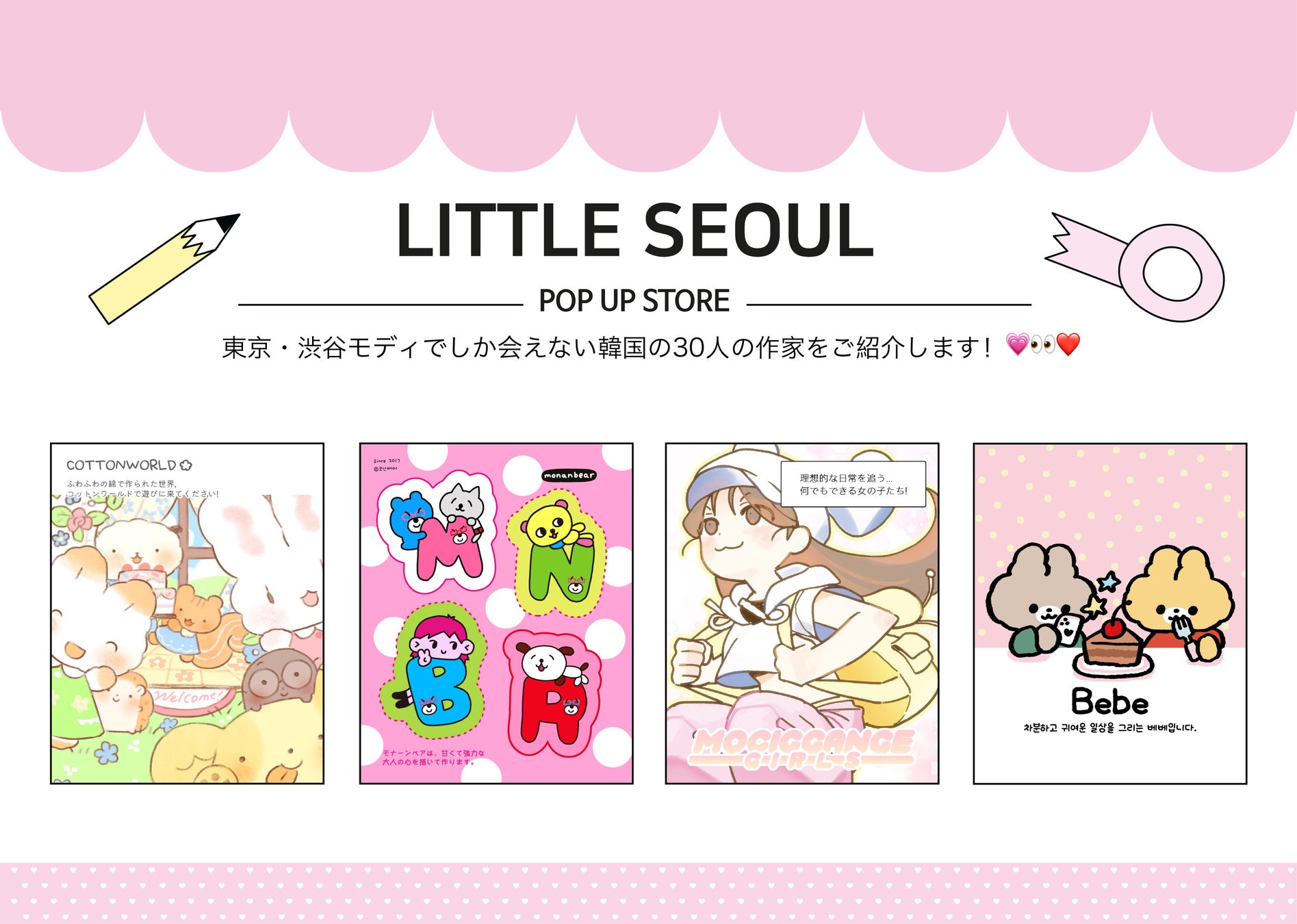 株式会社GOLDENでは、韓国の人気クリエイターが30人集結するPOP UP STORE 「LITTLE SEOUL EP.1」を、2025年3月11日(火)〜3月18日(火)に渋谷モディにて開催いたします。
