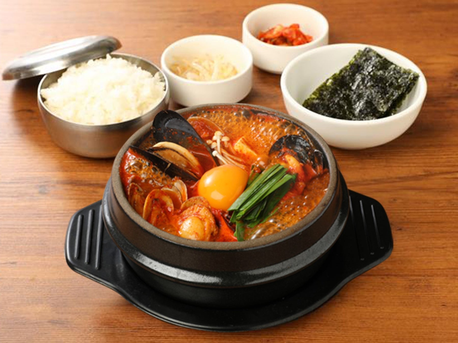 ムール貝・ベビーホタテ・あさりの3種の貝の旨みに、店舗仕込みのこだわりの「タテギ」がプラスされた「貝たっぷりスンドゥブチゲ」は、韓国料理ならではの辛さと旨みで味の奥深さを感じていただけます。