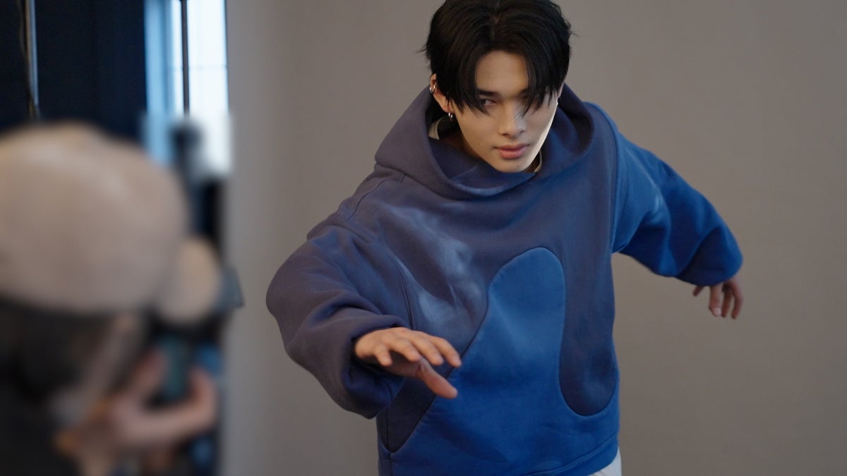 ―今日の撮影が、子供部屋から始まって少しずつ傾いていき、窓の外にジャンプするというものだったんですが、ストーリーも含めて、すごく楽しく撮影できたんじゃないかなと思います。こだわったシーンは最後のジャンプするシーンで、表情のほかにも、外に飛び出すというダイナミック感を再現しようとこだわりました。学生の皆さんにも僕たちENHYPENを応援してくれるファンの皆さんENGENEにも注目してもらいたいです。